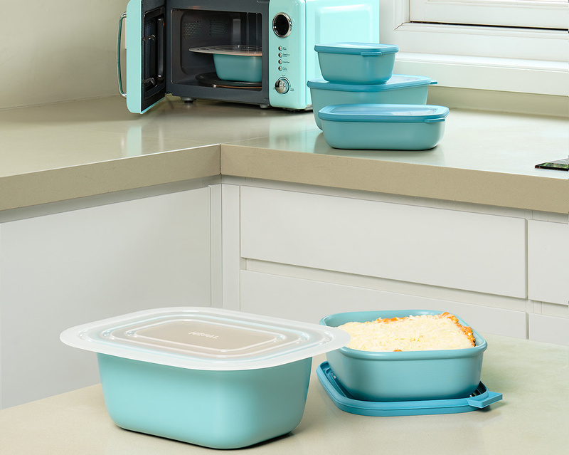 Obszerne miski, choć są praktyczne, często zabierają dużo przestrzeni. Dlatego seria Cirqula jest piętrowalna. Możesz ułożyć miski w stos lub umieścić mniejsze w większych. Prostokątne kształty z kolei zapobiegają pozostawianiu wolnego miejsca w lodówce, zamrażarce i szafie.