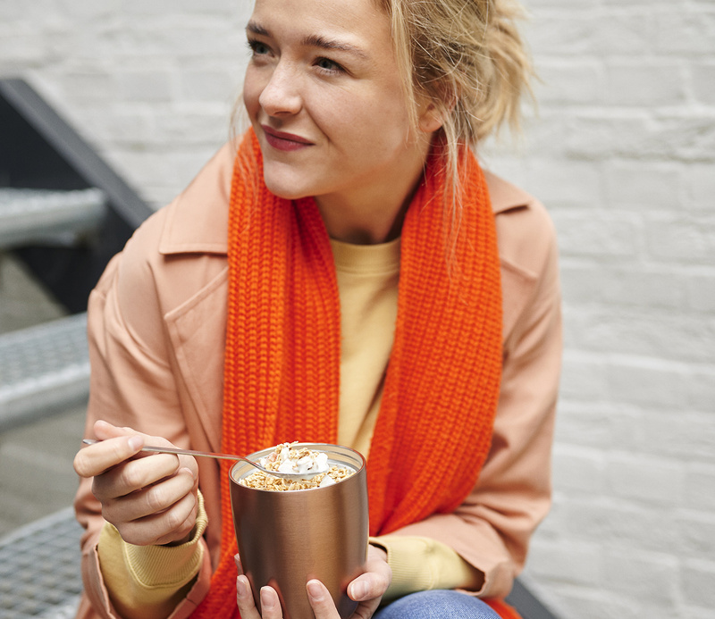 Wybierasz się do pracy lub na wycieczkę, planujesz dłuższą podróż i chcesz cieszyć się zimnym jogurtem lub ciepłą, domową zupą jarzynową? Mamy dla Ciebie rozwiązanie, to lunchpot Ellipse skłający się z dwóch części; termicznego pojemnika o podwójnych ściankach o pojemności 500ml oraz przezroczystej pokrywy - 200ml. Dzięki niemu Twoja zupa zostanie gorąca aż do 10 godzin, a jogurt zimny do 16!. Na wieczornej zmianie, w szkole lub na siłowni bez kuchenki mikrofalowej w pobliżu? Żaden problem: po prostu podgrzej zupę w domu, wlej do pojemnika na lunch, grzanki umieść w pokrywce ... i voila, nawet po kilku godzinach zjesz smaczny, gorący posiłek! Oczywiście izolowany lunchpot jest w 100% szczelny i pozostanie chłodny i suchy na zewnątrz, niezależnie od temperatury jego zawartości. Kompaktowy rozmiar, niewielka waga, pozwoli Ci zabrać ten wszechstronny pojemnik do torebki, plecaka, tornistra i cieszyć się ulubionym daniem gdzie tylko chcesz. Produkt możemy myć w zmywarce