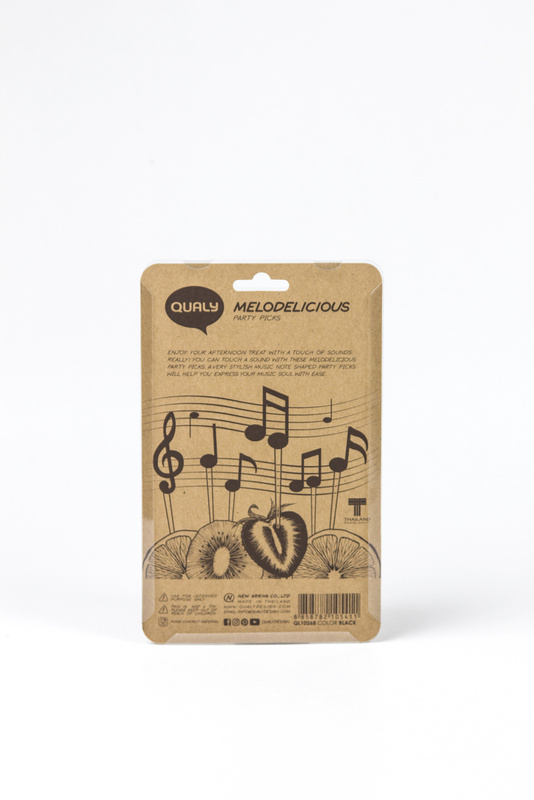 Zestaw 6 roztańczonych wykałaczek do serwowania MELODILICIOUS dodadzą radości przy serwowaniu przekąsek. Ciesz się popołudniową ucztą z odrobiną dźwięków. Bardzo stylowe wykałaczki imprezowe w kształcie nut, pomogą Ci z łatwością wyrazić swoją muzyczną duszę :)