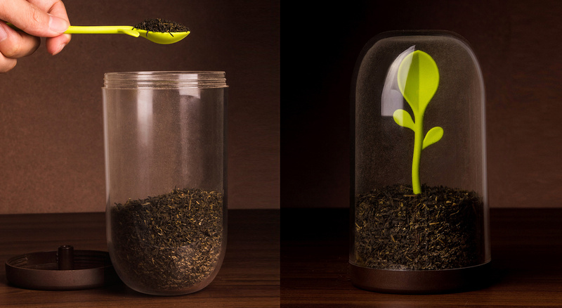 Powitaj naturę w zaciszu swojego domu, dzięki pojemnikowi na przyprawy Sprout Jar. Otwórz pokrywkę kopuły i napełnij ją mieloną kawą, liśćmi herbaty, fasolą lub dowolną wybraną przyprawą. Roślinka, która stoi pośrodku kopuły i działa jak łyżka, jest gotowa Ci służyć.