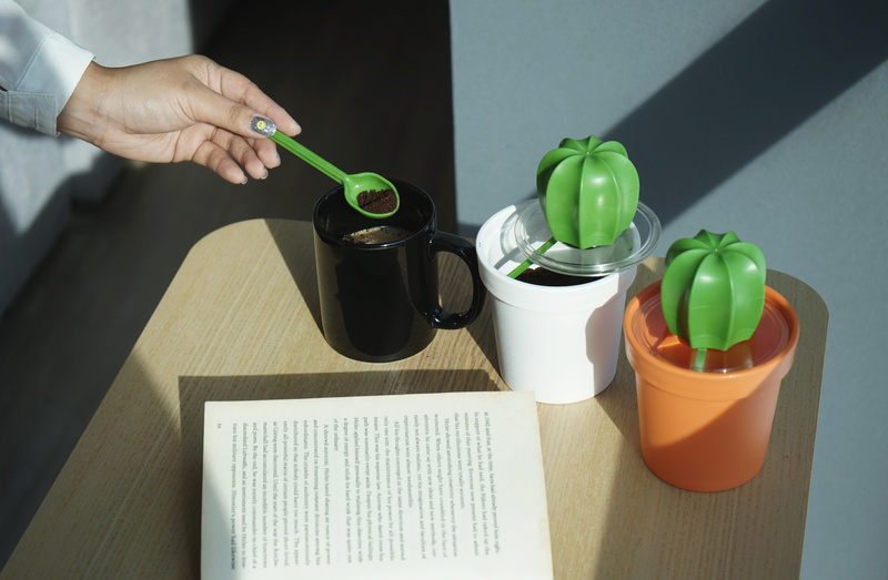 Qualy - Pojemnik z łyżeczką na kawę kaktus Cacnister biało-zielony Qualy - Pojemnik z łyżeczką na kawę kaktus Cacnister biało-zielony Pojemnik kaktus Cacnister z łyżeczką to idealny przedmiot do przechowywania kawy lub innych produktów sypkich.