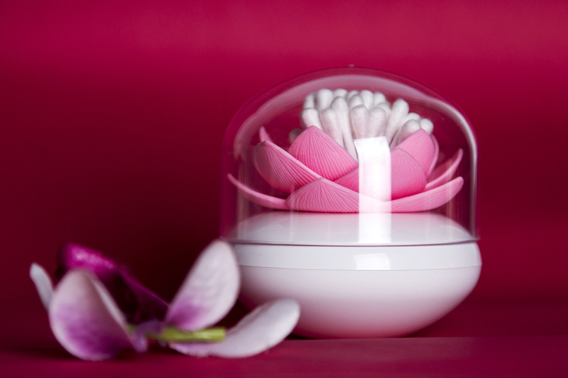 Qualy - Pojemnik na patyczki do uszu Lotus biało-różowy