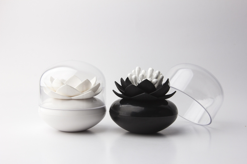 Qualy - Pojemnik na patyczki do uszu Lotus czarno-biały