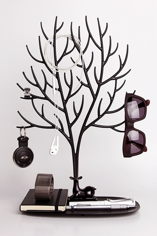 Twoja ulubiona biżuteria i akcesoria mogą również pięknie wyglądać, kiedy zdejmujesz je pod koniec dnia. Z pomocą przychodzi My Deer. To eleganckie i praktyczne drzewko z tacą pomieści zarówno pierścionki, kolczyki, naszyjniki, bransoletki, jak również inne drobne akcesoria.