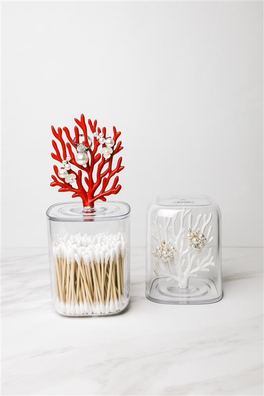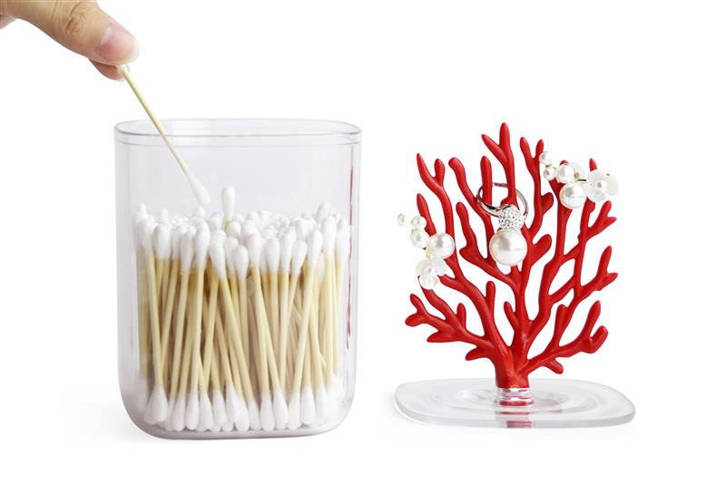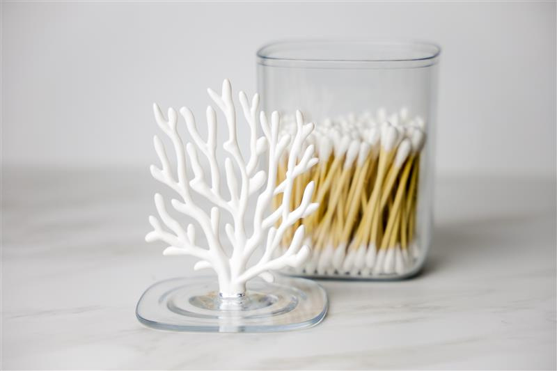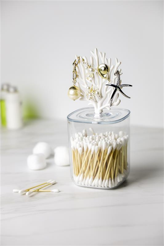 Wielozadaniowy, przezroczysty pojemnik, który pomieści wszelkiego rodzaju rzeczy: bawełniane płatki kosmetyczne, patyczki do uszu czy biżuterię.