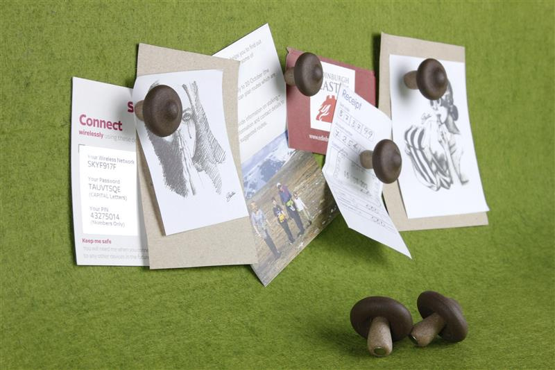 Upewnij się, że nie wkładasz ich do zupy. W rzeczywistości są to magnesy w kształcie grzyba. Po prostu umieść je na dowolnej metalowej powierzchni, aby zabezpieczyć swoje notatki. To jak zbieranie grzybów z pola za każdym razem, gdy usuwasz magnes.