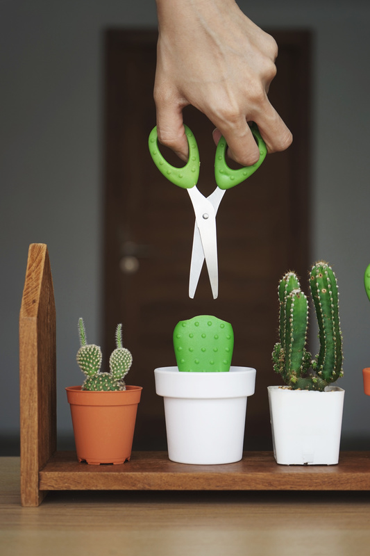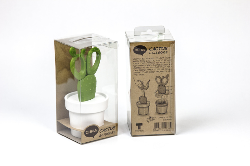 Qualy - Nożyczki w pojemniku Cactus biel/ziel.