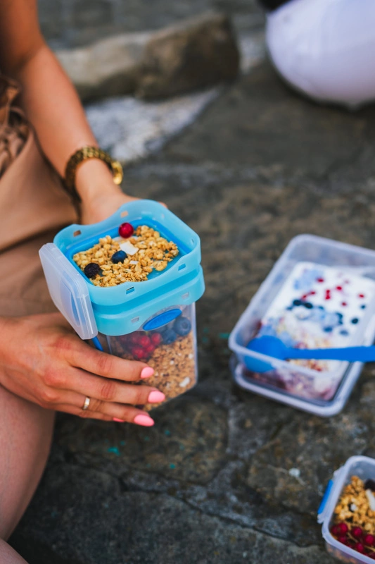 Nadaje się do podgrzewania w mikrofalówce (uchwyty są odporne na nagrzewanie, należy podgrzewać otwarty pojemnik). Nadaje się również do lodówki, zamrażarki i mycia w zmywarce. Lunchbox jest wolny od szkodliwych substancji, jak BPA.