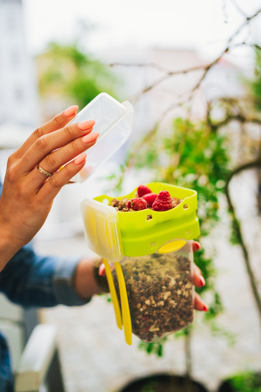 Nowoczesny i praktyczny pojemnik na śniadanie, czy lunch z serii Foodie Push&Push. Lunchbox posiada dwa szczelne pojemniki o pojemności 230 i 650ml oraz zestaw sztućców - łyżkę i widelec. Pojemnik jest w 100% szczelny, przez co zachowuje świeżość potraw na dłużej, oraz posiada opanentowaną technologię push&push, ułatwiającą jego otwieranie i zamykanie.