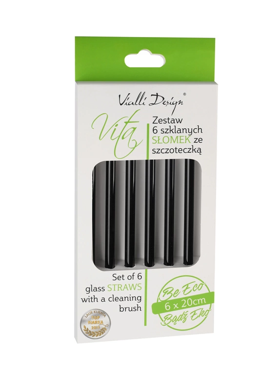 Szklane słomki z serii VITA o długości 20cm i średnicy 8mm to alternatywa dla jednorazowych, wykonanych z tworzywa słomek. Wykonane są z wysokiej jakości szkła boro-krzemowego, wolnego od metali ciężkich i BPA. Nie pozostawiają metalicznego posmaku, nie reagują z żadnymi płynami, oraz są hipoalergiczne.