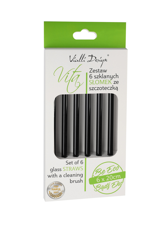 Szklane słomki z serii VITA o długości 20cm i średnicy 8mm to alternatywa dla jednorazowych, wykonanych z tworzywa słomek. Wykonane są z wysokiej jakości szkła boro-krzemowego, wolnego od metali ciężkich i BPA. Nie pozostawiają metalicznego posmaku, nie reagują z żadnymi płynami, oraz są hipoalergiczne.