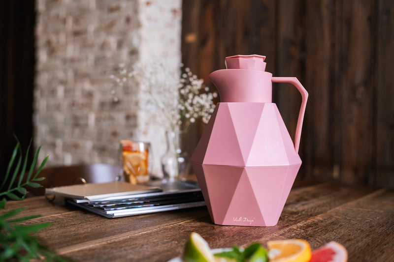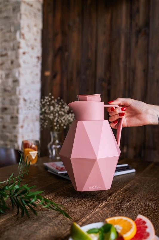 Termos serii GEO marki Vialli Design został wykonany z wysokiej jakości materiałów. Obudowa została wykonana z tworzywa sztucznego. Dzięki zastosowaniu szklanego wkładu, termos utrzymuje temperaturę nawet do 24 godzin! Prestiżowy wygląd oraz nowoczesny design wzbogacony ostrymi krawędziami, nadaje produktowi eleganckiego, oraz nowoczesnego charakteru.  Wygodny termos w formie dzbanka jest nieoceniony w domu, w firmie oraz  wszędzie gdzie potrzeba utrzymać wysoką lub niską temperaturę płynu przez dłuższy czas. Termos jest lekki, więc z powodzeniem mogą z niego korzystać osoby, które mają trudności z podnoszeniem cięższych przedmiotów. Termos ma bardzo łatwe otwieranie i zamykanie.