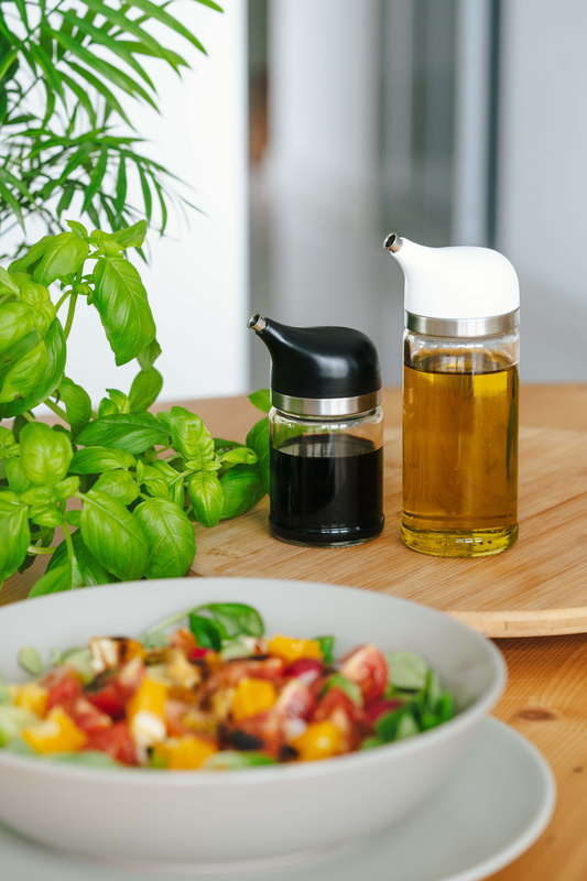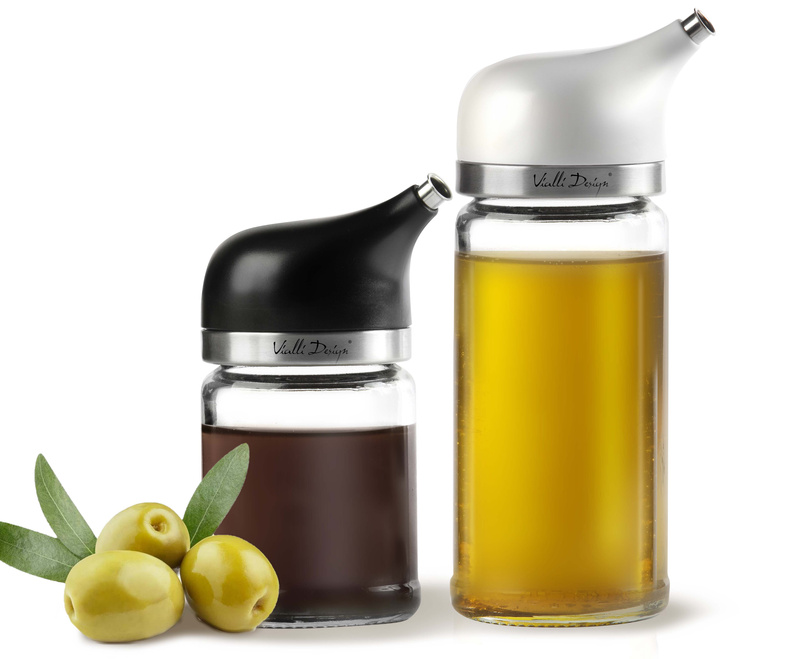 Elegancki i praktyczny zestaw dozowników marki Vialli Design. Zestaw jest przeznaczony przede wszystkim do oliwy z oliwek oraz octu winnego czy balsamicznego. Doskonale sprawdzi się także w przypadku sosów sojowych lub innych przypraw w płynie. Wysoka jakość wykonania, łatwość użytkowania, efektowny wygląd to cechy tego produktu. Dzięki niezwykle praktycznym dozownikom z systemem non-drip z łatwością pokryjemy powierzchnię patelni cienką warstwą oliwy oraz w kontrolowany sposób doprawimy sałatkę lub inne potrawy. Elegancka forma prezentowanych tu dozowników pozwoli na korzystanie z nich w kuchni oraz przy stole. Szklany dozownik z przezroczystymi ścinkami pozwoli wyeksponować zawartość i jednocześnie kontrolować jej poziom. Czarno biała kolorystyka znakomicie sprawdzi się w modernistycznych kuchniach, a produkt oprócz funkcji użytkowych będzie również ciekawym akcentem dekoracyjnym.