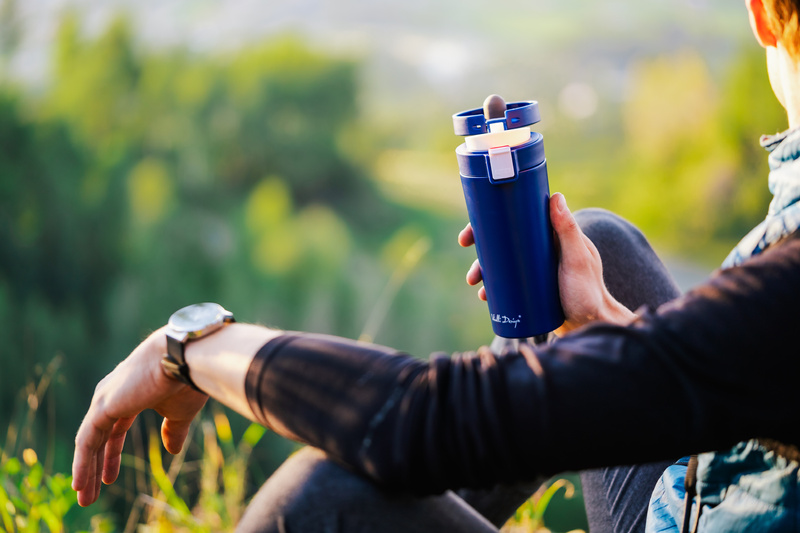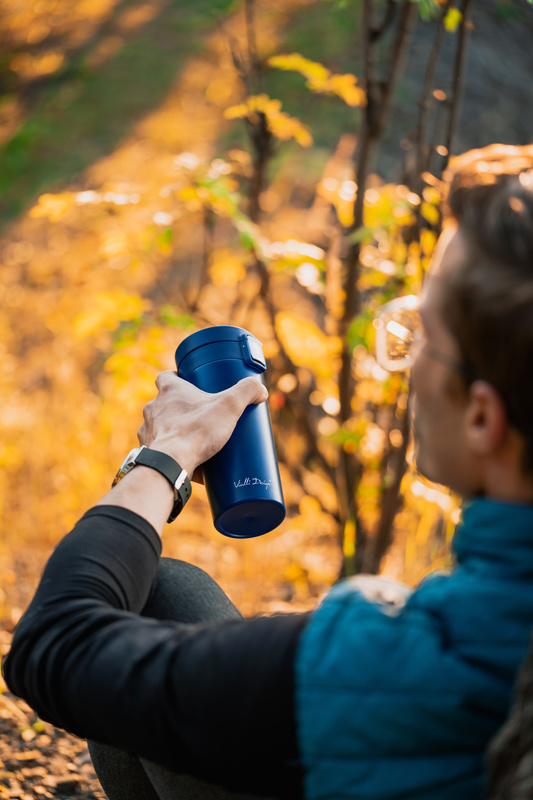 Decydując się na kubek termiczny Fuori, mamy możliwość wybrania naczynia w odpowiadającym nam wariancie kolorystycznym. Dostępne kolory to biały, różowy, granatowy, zielony i grafitowy – każdy znajdzie coś dla siebie. Otwarcie kubka przy pomocy kciuka jest niezwykle proste, a przed przypadkowym rozlaniem napoju skutecznie chroni przycisk z blokadą.