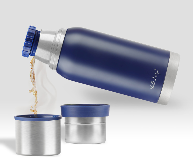 Termos turystyczny Fuori dostępny jest w pięciu wariantach kolorystycznych. Możemy wybierać pomiędzy białym, różowym, granatowym, zielonym i grafitowym. Produkt wyróżnia się nowoczesnym designem, wygodnym kształtem oraz stuprocentową szczelnością – takie połączenie to gwarancja zadowolenia każdego klienta. Termos firmy Vialli Design został dodatkowo zaopatrzony w dwa kubki o pojemności 150 ml i 200 ml.
