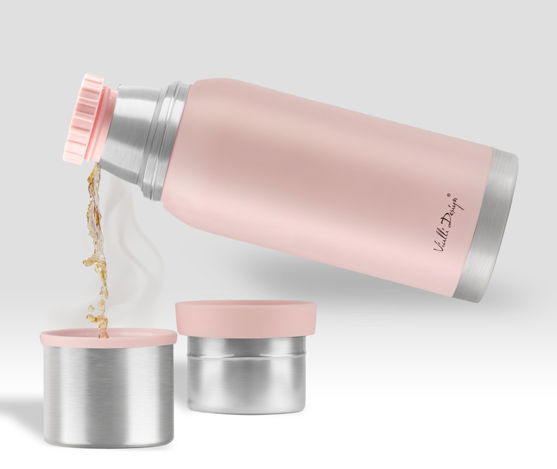 Termos turystyczny Fuori dostępny jest w pięciu wariantach kolorystycznych. Możemy wybierać pomiędzy białym, różowym, granatowym, zielonym i grafitowym. Produkt wyróżnia się nowoczesnym designem, wygodnym kształtem oraz stuprocentową szczelnością – takie połączenie to gwarancja zadowolenia każdego klienta. Termos firmy Vialli Design został dodatkowo zaopatrzony w dwa kubki o pojemności 150 ml i 200 ml.