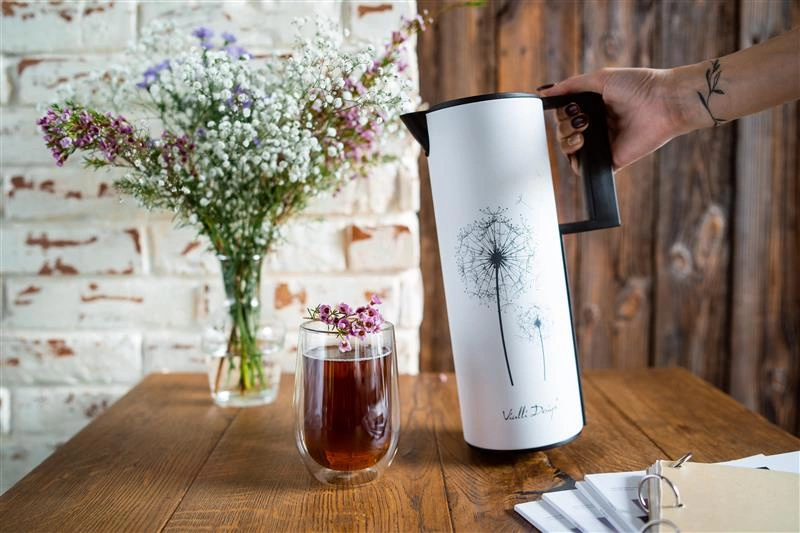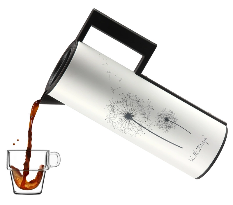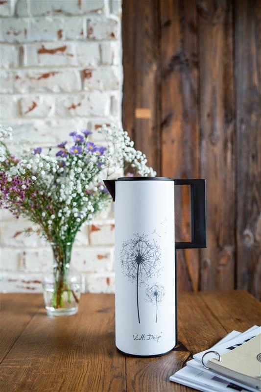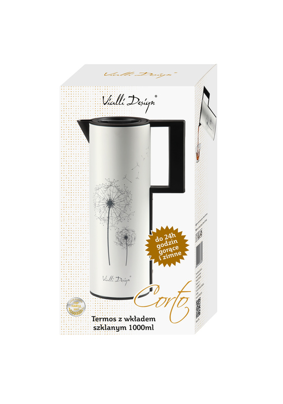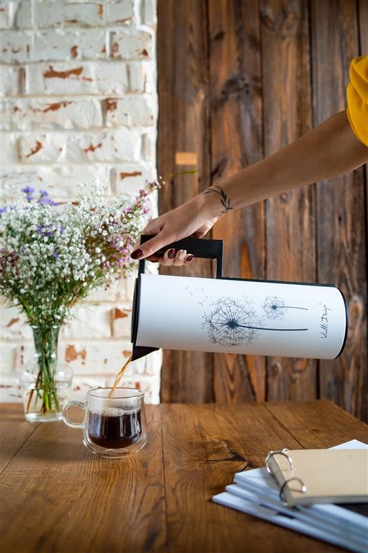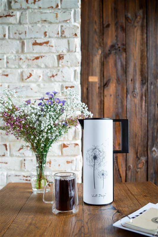 Termos Dandelione Corto o pojemności 1 litra doskonale sprawdzi się do kawy oraz herbaty. Dzięki niemu napój zachowa swoją temperaturę do aż 24 godzin. Jest to możliwe dzięki zastosowaniu szklanej izolacji próżniowej.