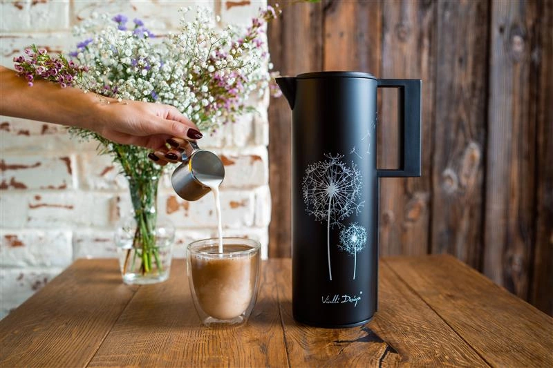 Termos Dandelione Corto o pojemności 1 litra doskonale sprawdzi się do kawy oraz herbaty. Dzięki niemu napój zachowa swoją temperaturę do aż 24 godzin. Jest to możliwe dzięki zastosowaniu szklanej izolacji próżniowej.