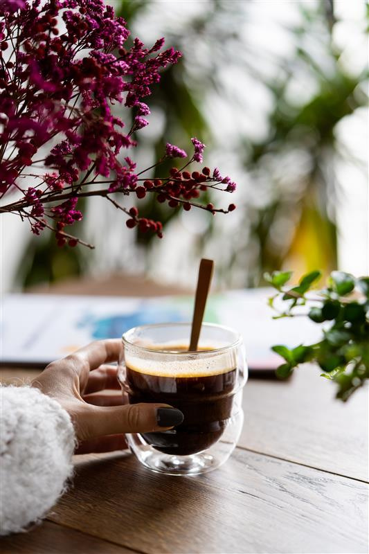To właśnie komfortowe, dopasowane do potrzeb użytkownika rozwiązania wyróżniają produkty takie jak szklanka SFERICO. Podwójne szkło to odpowiedź na oczekiwania tych, którzy nade wszystko cenią sobie ciepłą kawę. Taka konstrukcja zatrzymuje temperaturę napoju na dłużej. Dzięki temu pijąc, możesz zająć się innymi przyjemnościami lub obowiązkami. Zewnętrzna ścianka się nie nagrzewa, co umożliwia komfortowe trzymanie gorącego napoju w dłoniach. Szkło delikatnie się zwęża w miejscu, w którym chwytasz szklankę. To zwiększa wygodę użytkowania i pozwala swobodnie korzystać z naczynia.