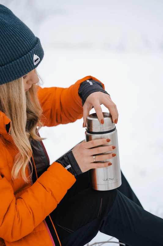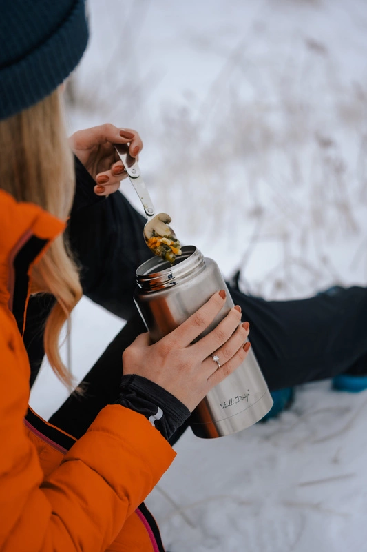 Aby jeszcze bardziej zwiększyć funkcjonalność termosu, dołączamy do niego specjalną łyżeczkę, którą można złożyć i schować pod nakrętką. Umożliwia to umieszczenie w środku zupy do posilenia się w trakcie długiej podróży.