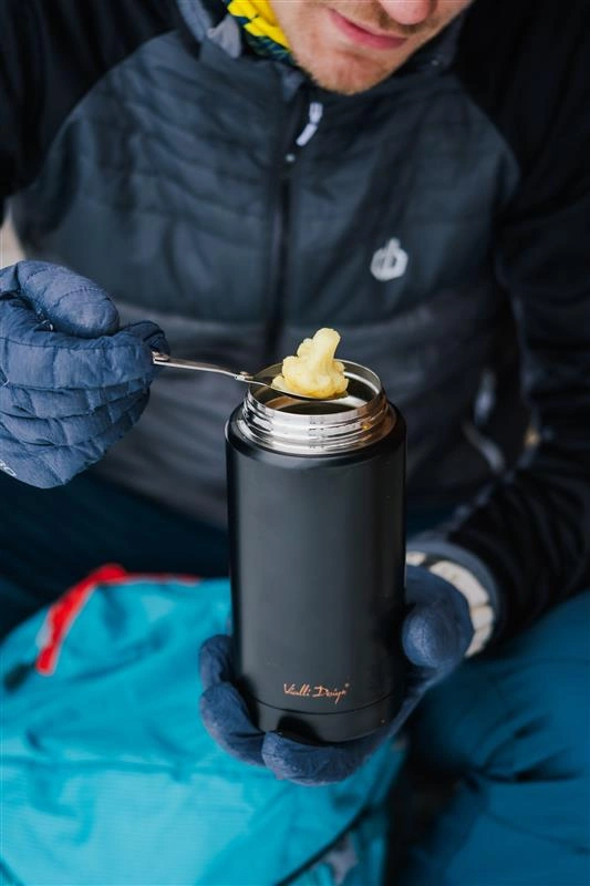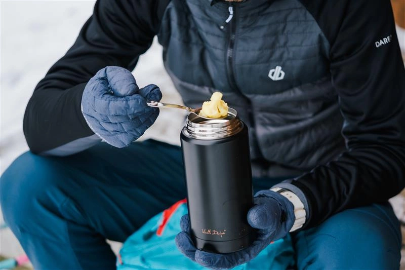 Aby jeszcze bardziej zwiększyć funkcjonalność termosu, dołączamy do niego specjalną łyżeczkę, którą można złożyć i schować pod nakrętką. Umożliwia to umieszczenie w środku zupy do posilenia się w trakcie długiej podróży.