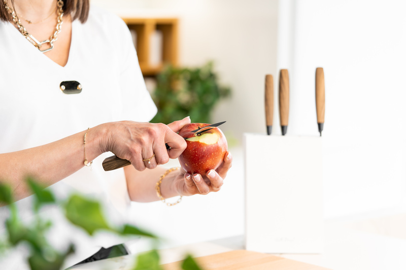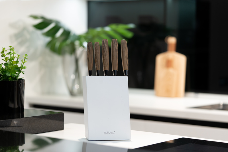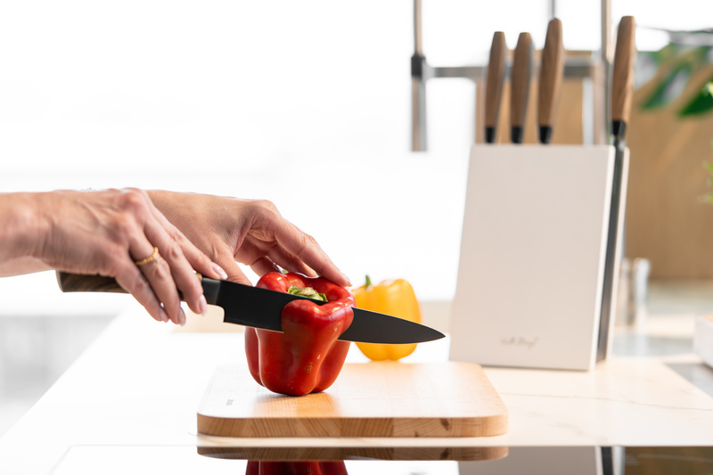 Każde z nich wyprofilowane jest tak, by jak najlepiej spełniać swoje zadanie. Ostatni nóż w bloku mocowany jest na magnes, co dodatkowo ułatwia korzystanie z zestawu.