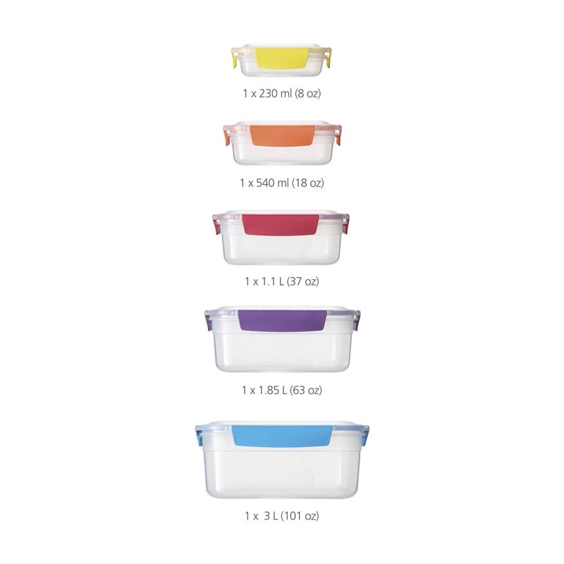 - w komplecie pojemniki o pojemnościach: 230 ml, 540 ml, 1.1 l, 1.85 l, 3 l,