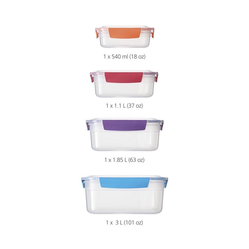 - w komplecie pojemniki o pojemnościach: 540 ml, 1.1 l, 1.85 l, 3 l,