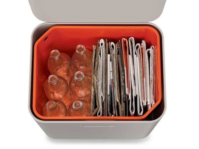 - wyjmowany pojemnik (4 l) na odpadki organiczne z pokrywką – można stawiać go na blacie, a pokrywkę zawiesić na krawędzi kosza,
