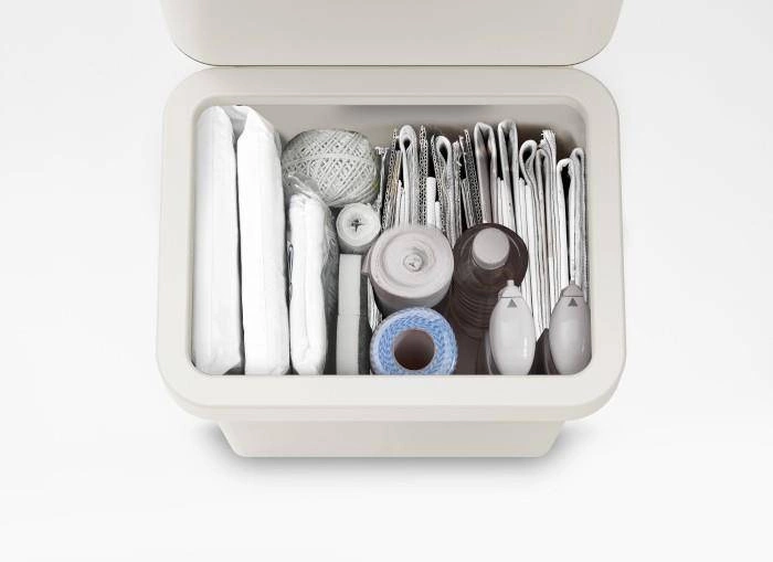 - wyjmowany górny kosz posiada krawędź wyposażoną w otwory do przytrzymania worków na śmieci,