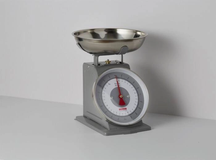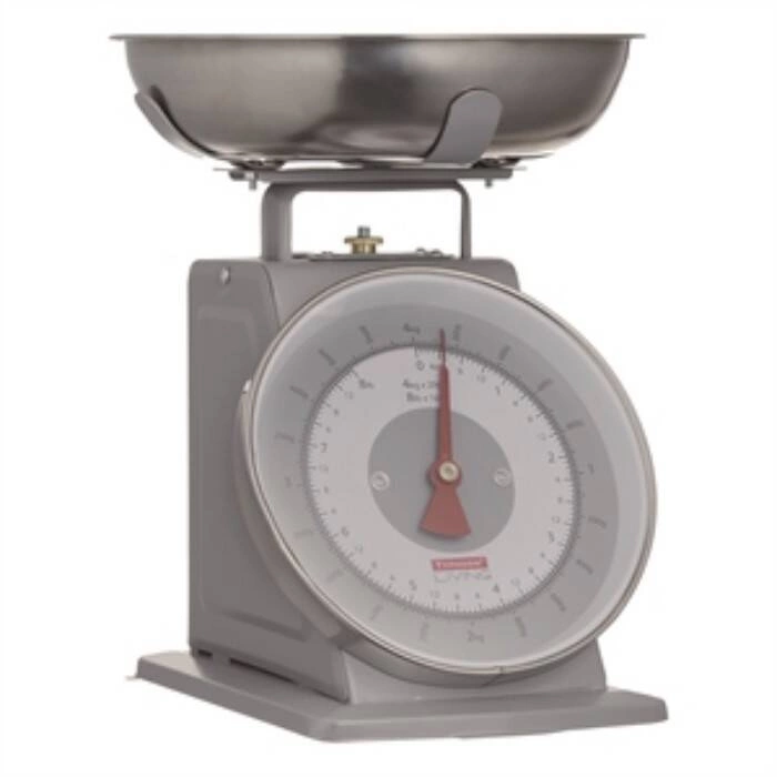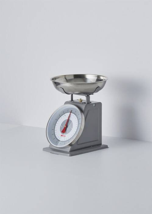 - waga z kolekcji Living, w kolorze szarym, - wykonana z malowanej stali, misa ze stali nierdzewnej, - max. obciążenie – 4 kg, - wyposażona w dużą, czytelną tarczę, - precyzyjny mechanizm, - idealna do każdej kuchni.