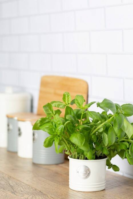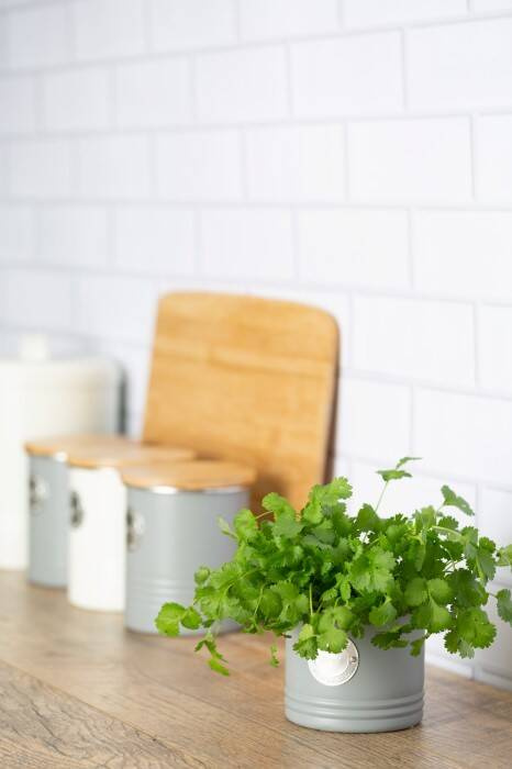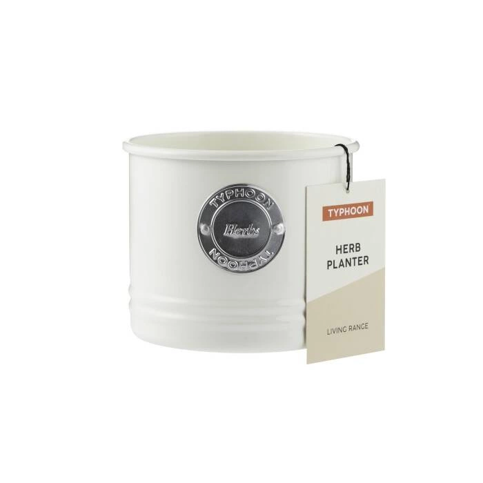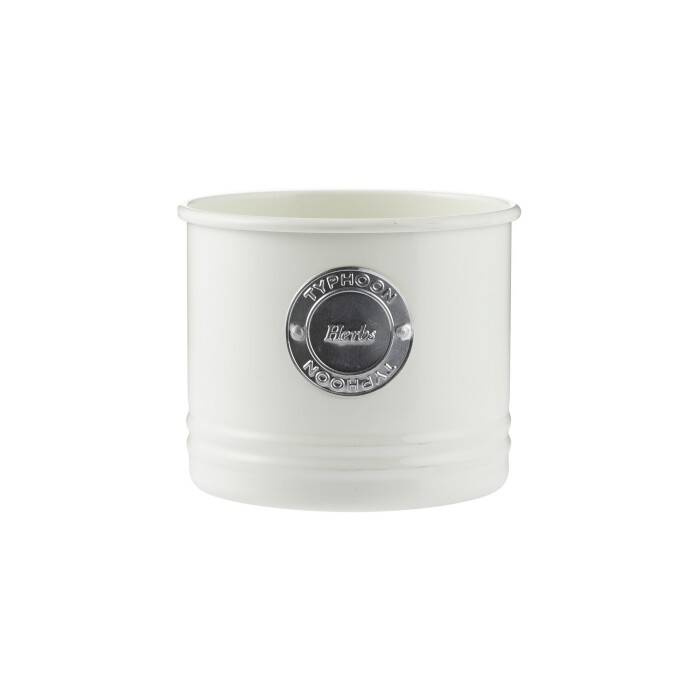 - doniczka na zioła lub osłonka na doniczkę, - wykonana ze stali malowanej na kremowy kolor, - styl retro, - z przodu plakietka z nazwą, - należy czyścić wilgotną ściereczką. Wymiary: 11 x 9 cm (śr. x wys.) Materiał: stal Kolor: kremowy Kolekcja: Living