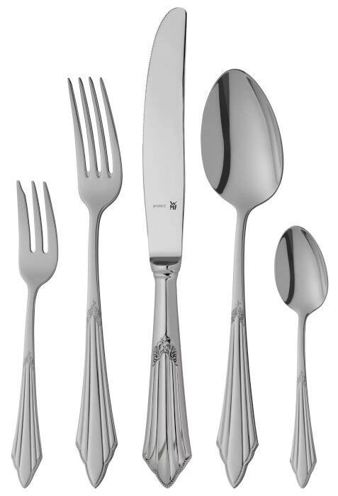 - sztućce wykonane z polerowanej stali nierdzewnej Cromargan Protect - opatentowany przez WMF stop metali, odporny na uszkodzenia i zadrapania, działanie kwasów z warzyw, i owoców, nie absorbuje zapachów,