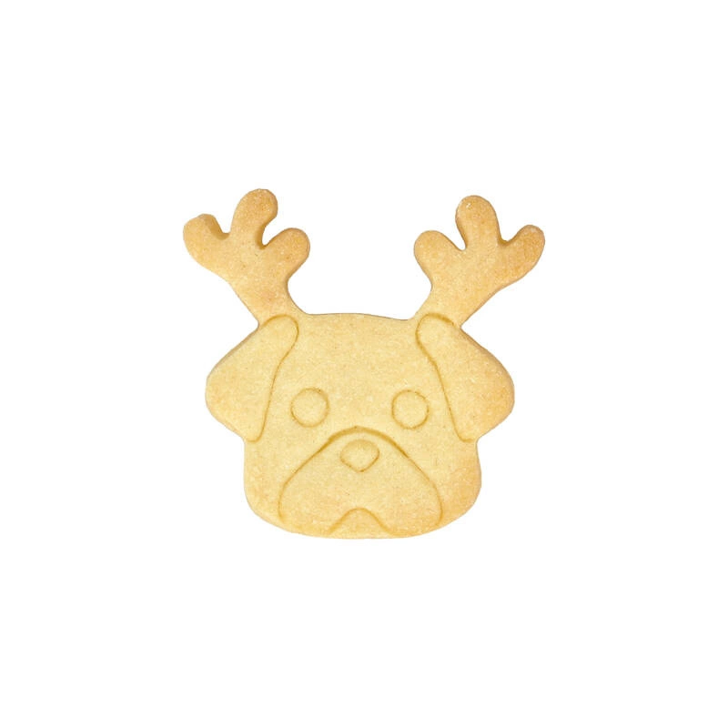 Foremka do ciastek w kształcie mopsa w wersji świątecznej. Gwarancja wieloletniego, bezproblemowego użytkowania. Jakość i grubość stali nierdzewnej gwarantuje trwałość foremki. Ostre krawędzie umożliwiają dokładne wykrojenie ciasta, a zaokrąglone brzegi są całkowicie bezpieczne dla dłoni. Można myć w zmywarce.