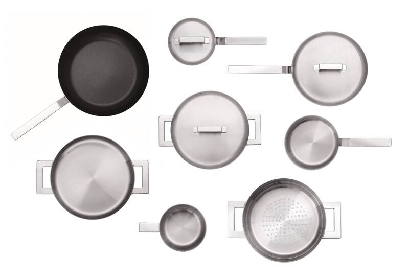 - zaokrąglony kształt - kondensacja pary wodnej oraz idealne przyleganie do krawędzi garnków,