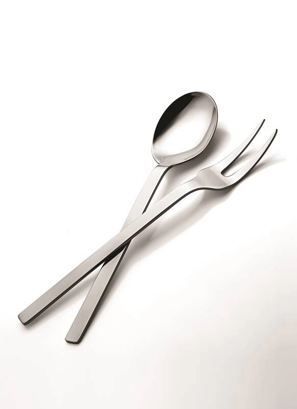 - zestaw do serwowania: łyżka oraz widelec w pudełku, - wykonane ze stali nierdzewnej 18/10, - nadają się do mycia w zmywarce, - wyprodukowane we Włoszech. Wymiary: 23,4 cm (dł. sztućców) Kolor: czarny Materiał: stal nierdzewna 18/10 Kolekcja: Stile