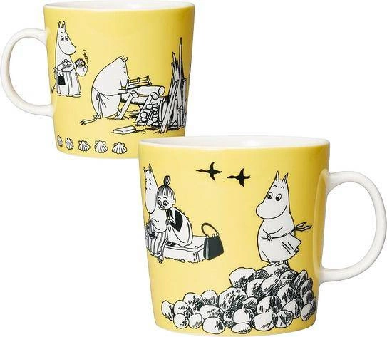Rysunki na kubku pochodzą z kilku różnych źródeł, jedno to logo zaprojektowane przez Tove Jansson na potrzeby komiksów, inne pochodzą z powieść Muminek na morzu oraz dwa komiksy Muminki pod żaglami i Artyści w Dolinie Muminków.