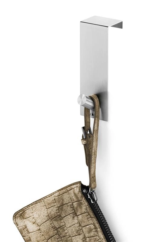 Pojedynczy wieszak na drzwi bezprzylgowe (bez felca) ZACK. Dopuszczalna grubość drzwi od 35 mm do 41 mm. Guma zapobiega rysowaniu drzwi. Stal nierdzewna 18/10 matowa