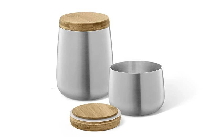 Zack - BEVO pojemnik kuchenny 1L Pojemnik kuchenny z bambusową pokrywką ZACK. Hermetyczna pokrywka zapobiega szybkiemu wietrzeniu przechowywanych produktów. Pojemność pojemnika 1 L. Stal nierdzewna 18/10 matowa Wymiary: wysokość 15,2 cm, średnica 11 cm, pojemność 1 L Materiał: stal nierdzewna 18/10 matowa, bambus, guma Symbol: 20868 Masz pytanie? Chcesz wiedzieć więcej? Zadaj pytanie a my odpowiemy niezwłocznie, najciekawsze pytania i odpowiedzi publikując dla innych. Zapytaj o produkt