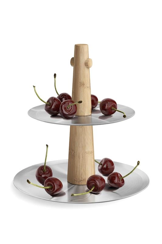 Etażerka ZACK. Bambusowy rdzeń, gumowe nóżki zapobiegają rysowaniu blatu. Stal nierdzewna 18/10 matowa