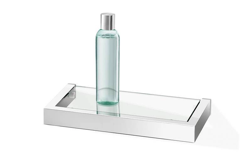 Szklana półka łazienkowa. Szkło przezroczyste, hartowane. Stal nierdzewna 18/10 polerowana