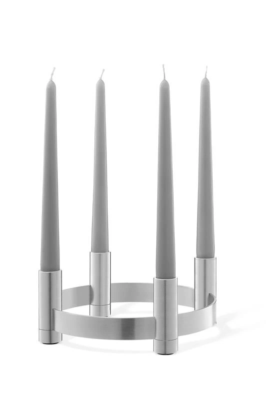 Świecznik na cztery świece ZACK. Gumowe nóżki zapobiegają rysowaniu blatu. Stal nierdzewna 18/10 matowa