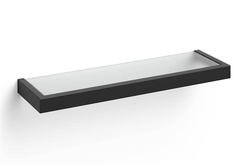 Szklana półka łazienkowa. Szkło matowe, hartowane. Stal nierdzewna malowana proszkowo na czarno