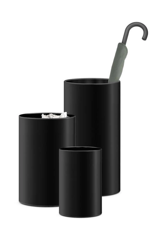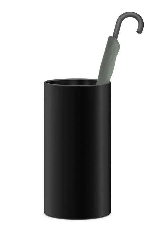 Kosz na parasole ZACK. Gumowe nóżki zapobiegają rysowaniu podłogi. Stal nierdzewna malowana proszkowo na czarno
