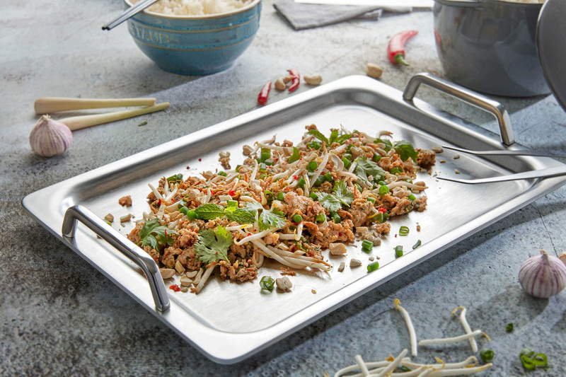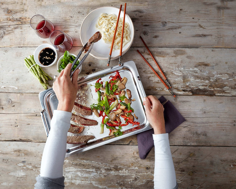 Dzięki płycie Teppanyaki z serii DEMEYERE Specialities 5 możesz szybko usmażyć zdrowe i aromatyczne potrawy dla wielu osób jednocześnie - na grillu, kuchence lub w piekarniku.