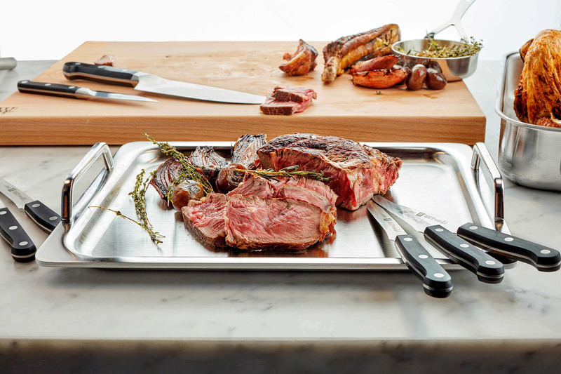 Metoda smażenia teppanyaki wywodzi się z kuchni japońskiej. Polega na smażeniu świeżych warzyw, ryb i mięsa z niewielką ilością tłuszczu, a następnie polewaniu składników aromatycznym sosem – wszystko to bezpośrednio na oczach gości. Właśnie dlatego niezbędna jest możliwie największa powierzchnia grzewcza. Naczynie wykonane jest z pięciu warstw: najwyższej jakości stali nierdzewnej 18/10, magnetycznej stali nierdzewnej 18/0, aluminium oraz aluminiowego stopu. Taka budowa gwarantuje równomierne rozprowadzanie ciepła na całej powierzchni płyty. Dzięki płaskiej konstrukcji mięso, ryby, a nawet naleśniki można bez problemu przewracań na drugą stronę. Niezależnie od tego, co akurat postanowisz zaserwować, powierzchnia płyty pozostaje niezmiennie srebrnobiała za sprawą specjalnej powłoki Silvinox®.