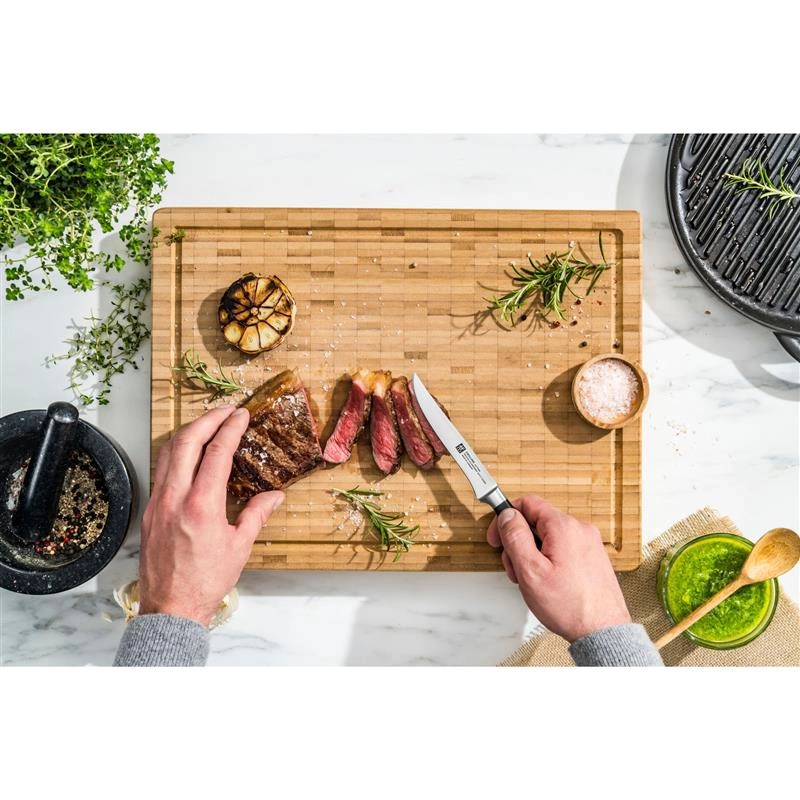 Uwielbiasz gotować i cenisz sobie niezawodne narzędzia do krojenia? Nóż do steków z serii ZWILLING ALL * STAR jest ich idealnym przedstawicielem. Bez problemu upora się z pieczonym, smażonym i grillowanym mięsem bez względu na to, czy akurat najdzie Cię ochota na wołowego steka, grillowaną karkówkę czy pyszny, jagnięcy udziec.