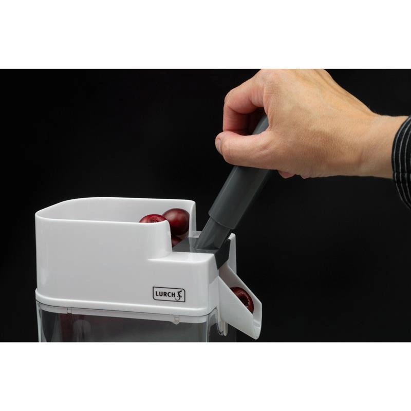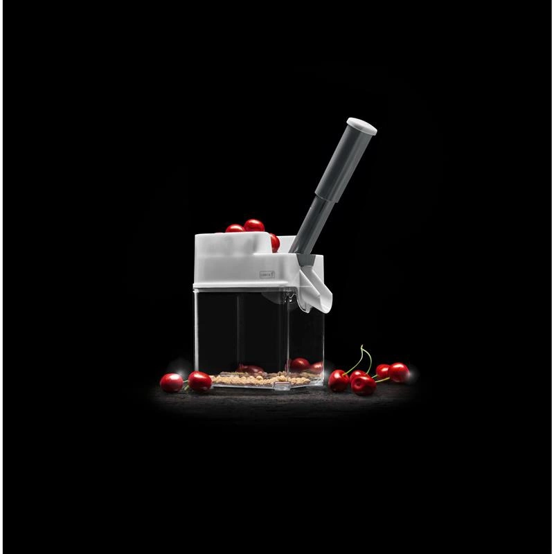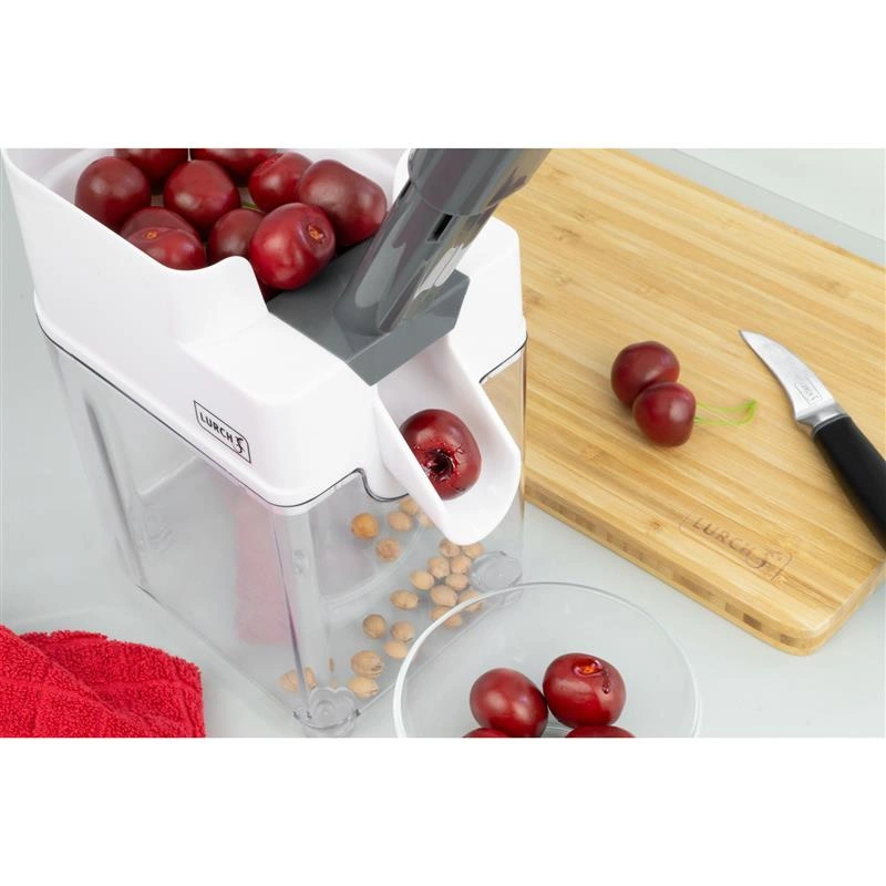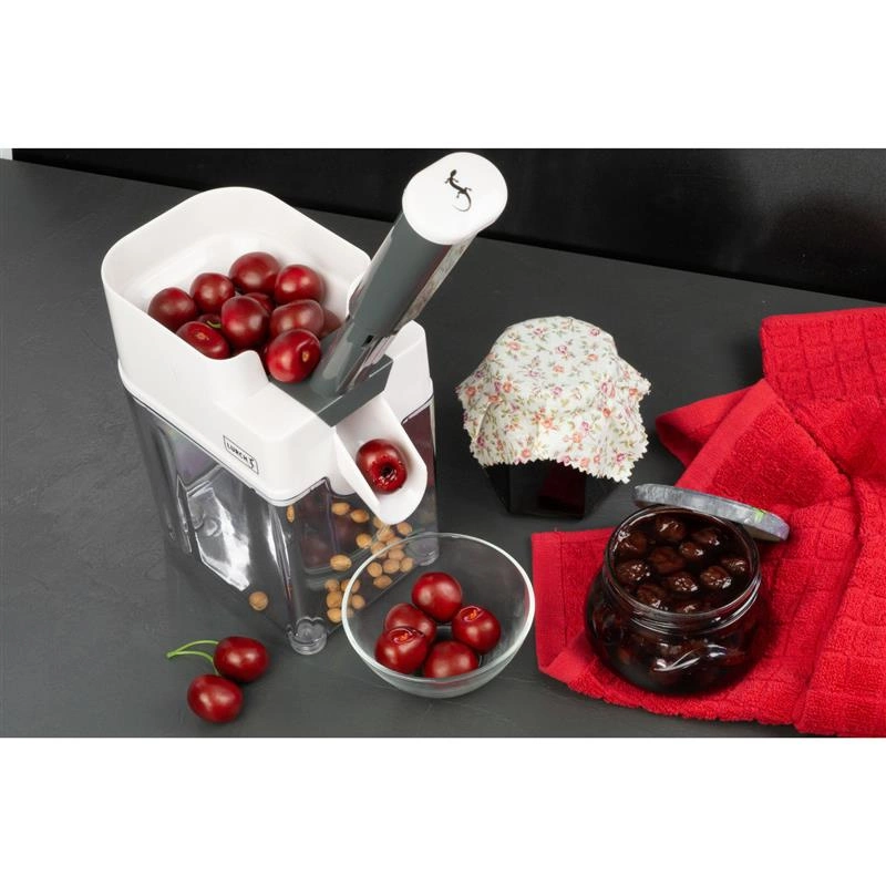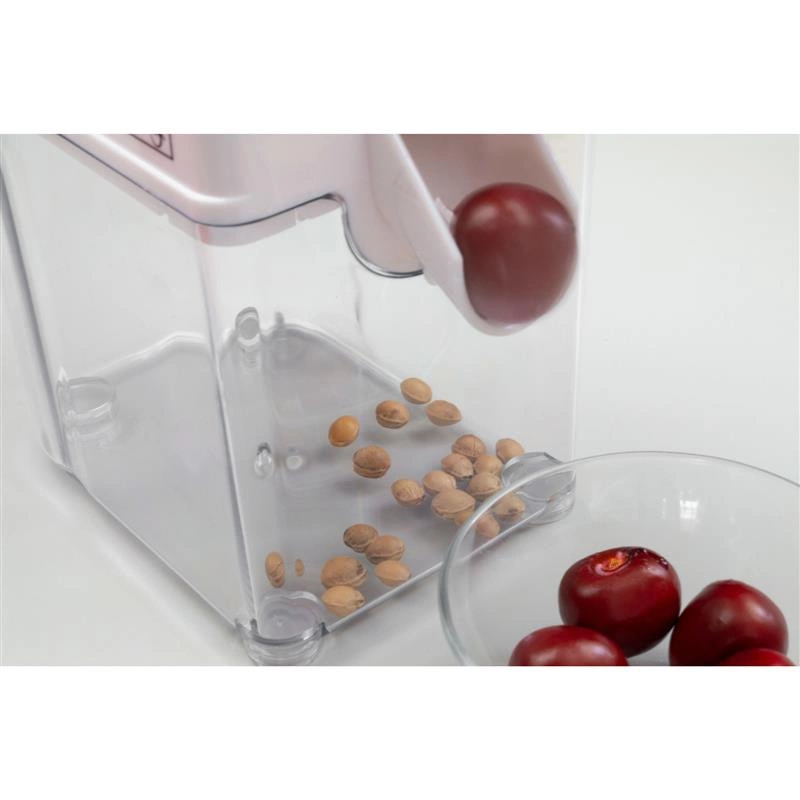 Praktyczna drylownica do wiśni. Posiada ostrze ze stali nierdzewnej oraz duży pojemnik na pestki.