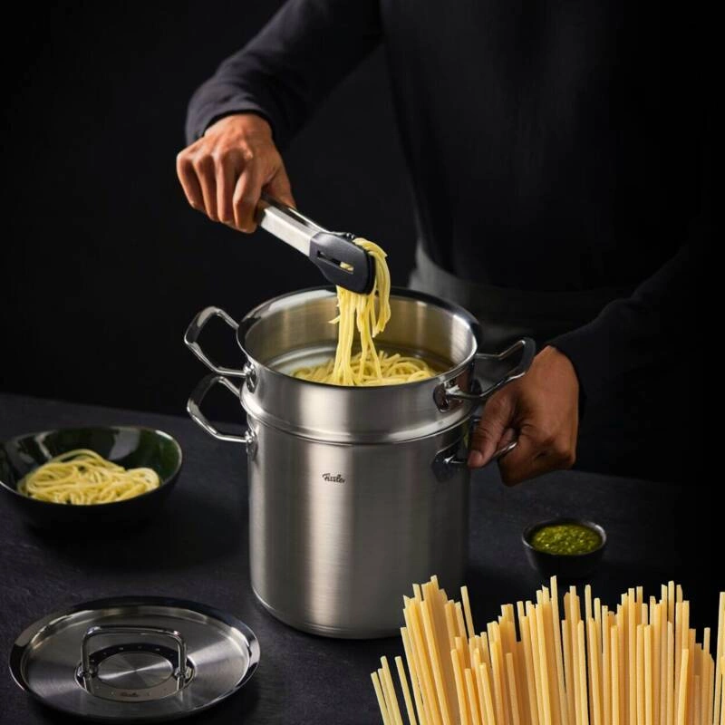 Garnek idealnie nadaję się do gotowania makaronu jak również warzyw na parze.