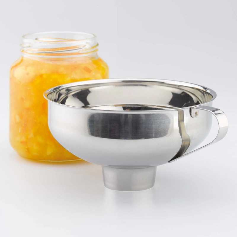 Lejek do dżemów wykonany został ze stali nierdzewnej. Jego średnica zewnętrzna to 12cm, pasuje do wszystkich popularnych naczyń szklanyh używanych w domowej kuchni. Odporny na korozję, higieniczny, kwasoodporny i niezniszczalny. Można myć w zmywarce.